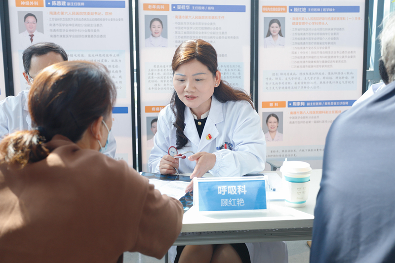 來自通大附院及市直醫(yī)院老年醫(yī)學(xué)科、呼吸與危重癥醫(yī)學(xué)科、心血管內(nèi)科、神經(jīng)內(nèi)科、全科醫(yī)學(xué)中心、疼痛科、神經(jīng)外科等多學(xué)科的10余名專家為現(xiàn)場群眾提供了免費(fèi)問診咨詢服務(wù)和健康指導(dǎo)。在綜合門診大廳健康家隅書吧,醫(yī)院精心準(zhǔn)備了重陽糕與養(yǎng)生茶,為長者送上“步步高升、壽高九九”的美好祝福。