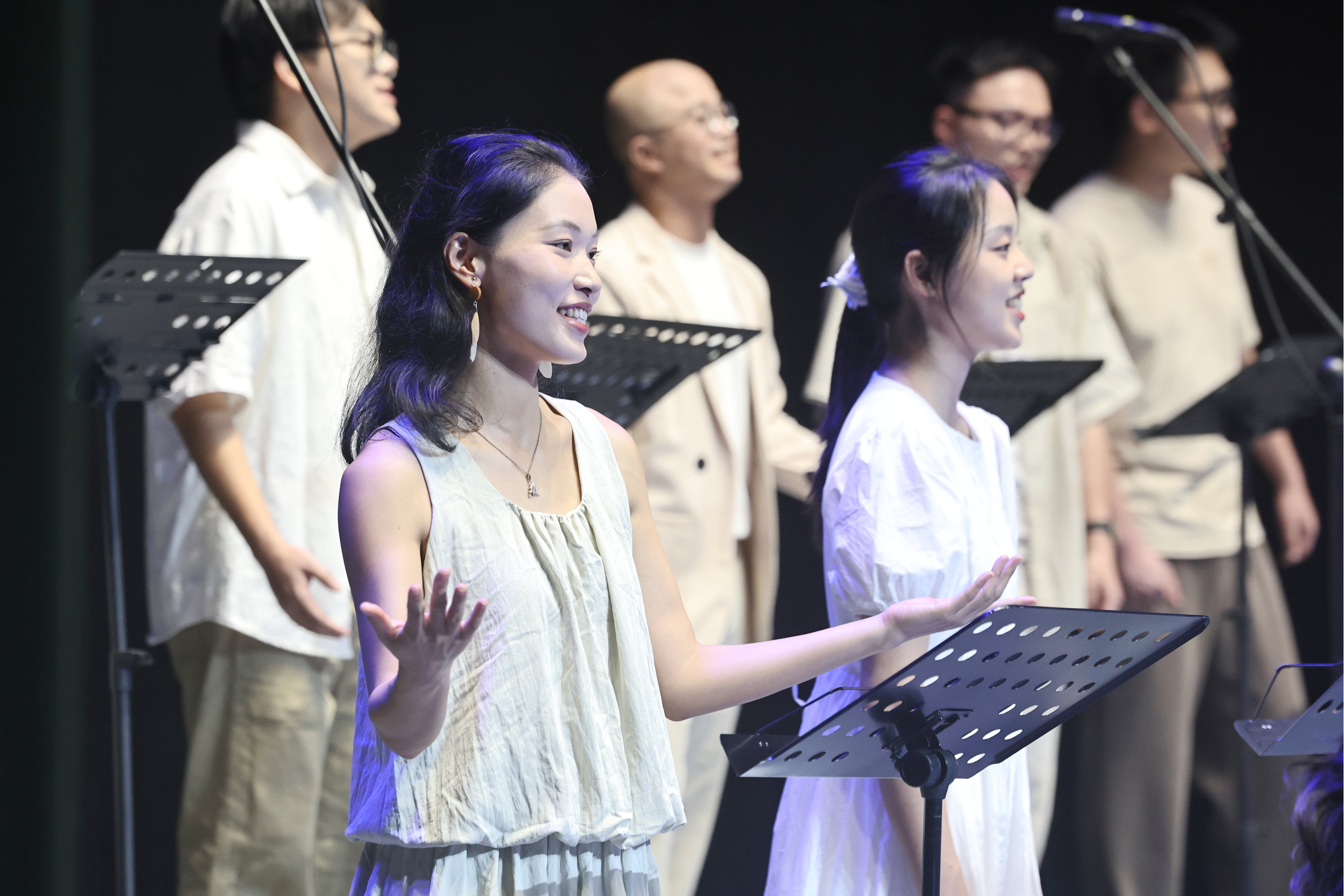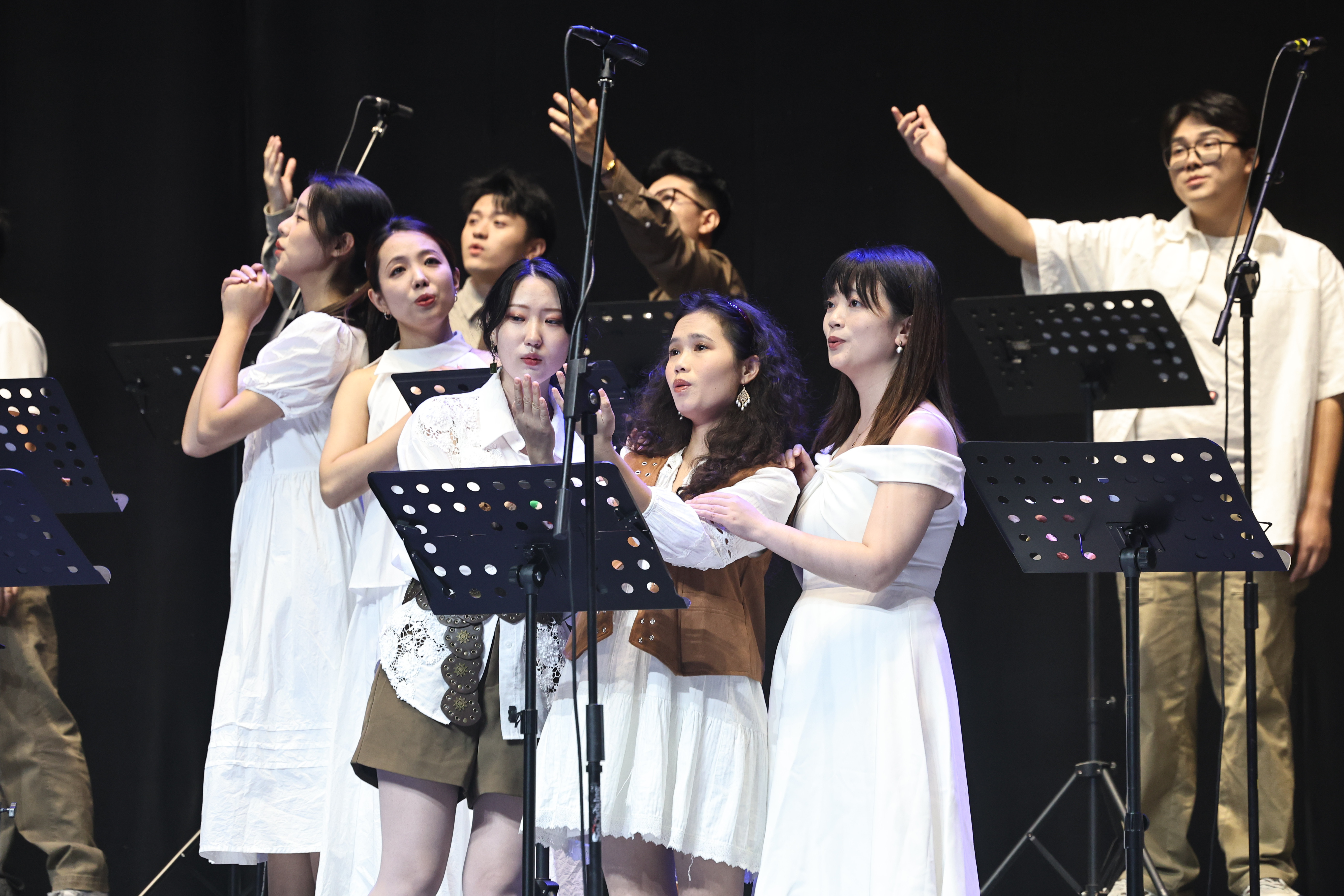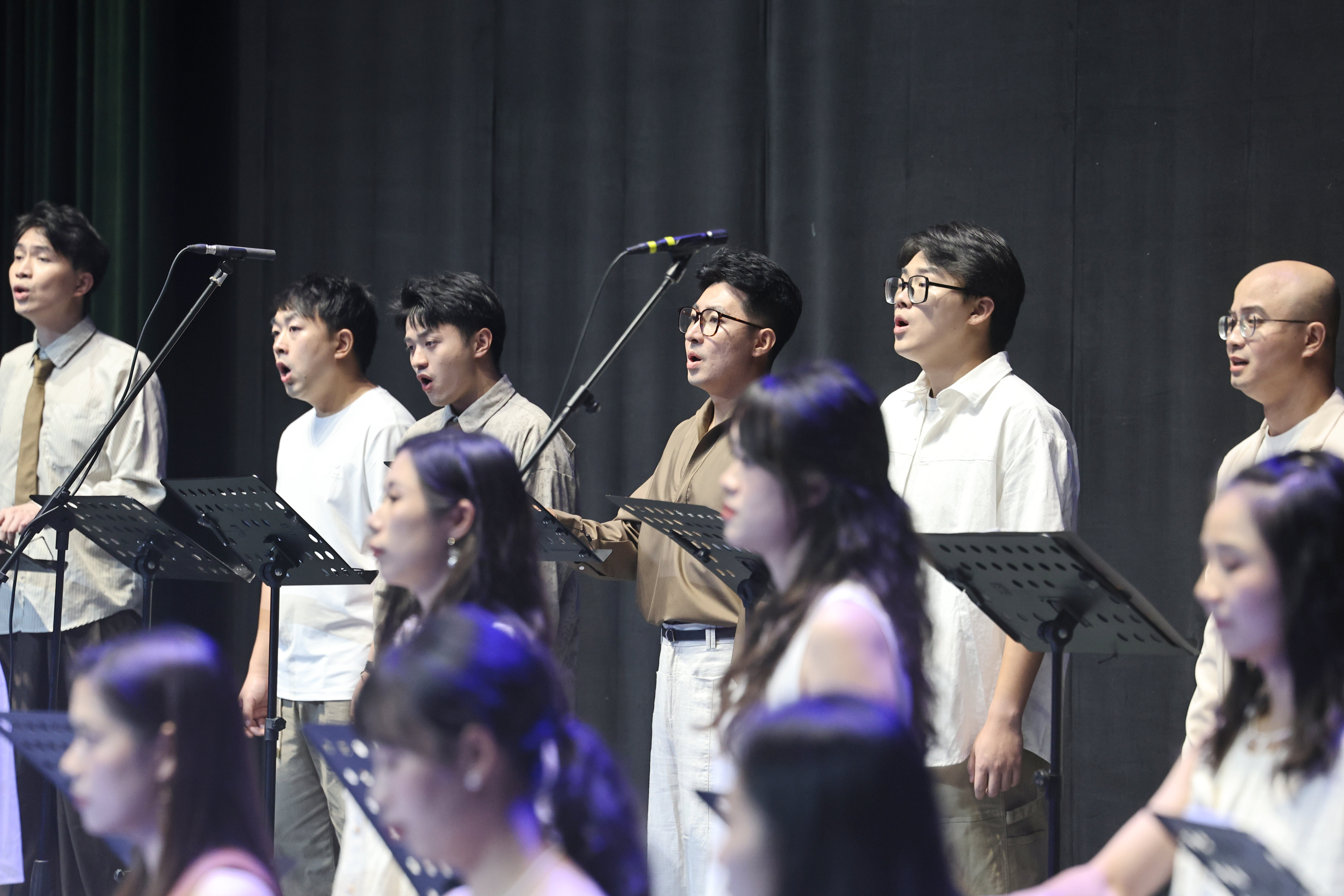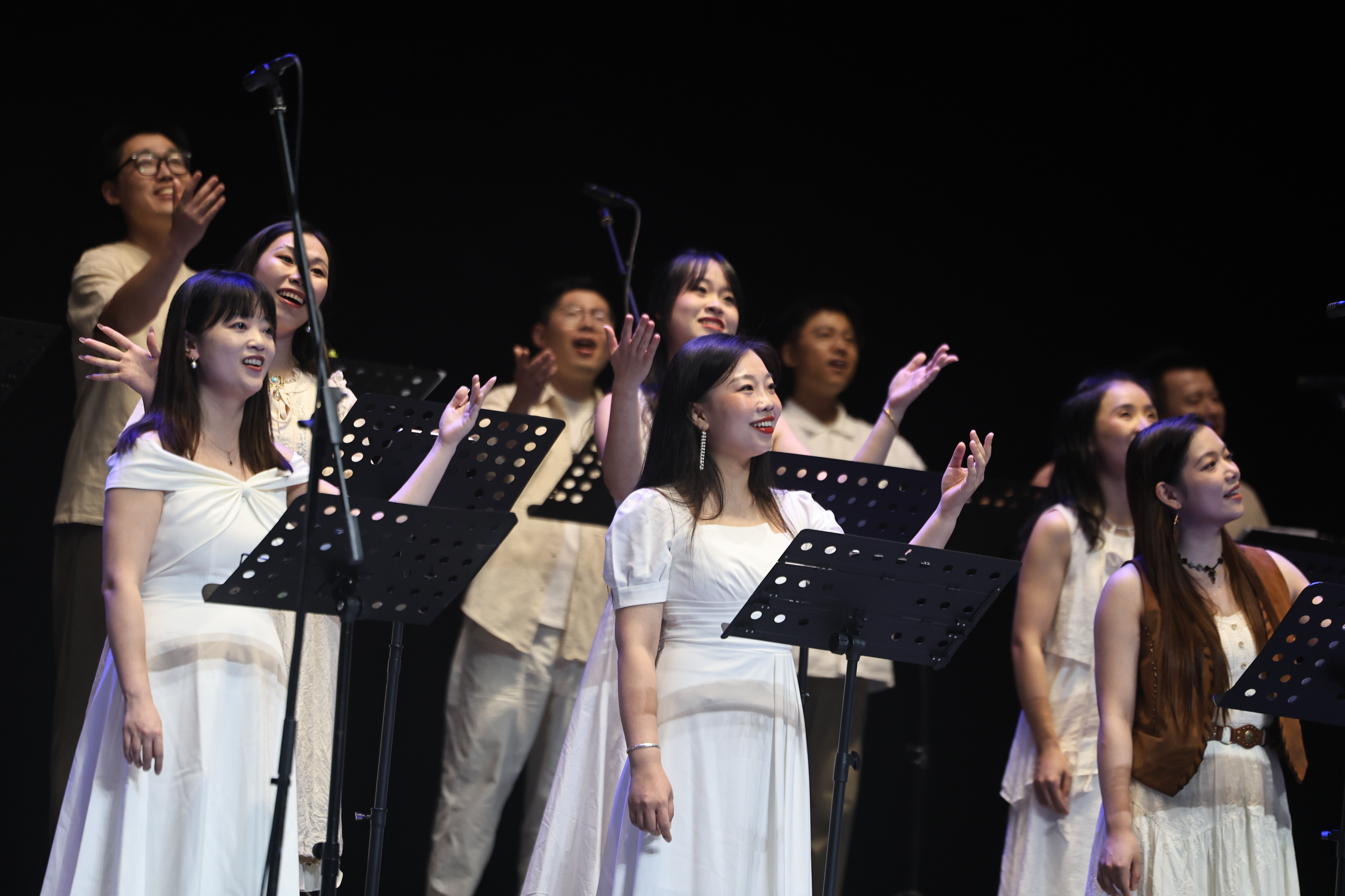 本場音樂會精選多首曲目,通過多聲部合唱的創(chuàng)新演繹,賦予《蝴蝶泉邊》《勇氣》《孤勇者》等歌曲全新藝術(shù)生命力。合唱團成員以精準的音準、豐富的層次感和飽滿的情感表達,展現(xiàn)了流行音樂與合唱藝術(shù)的深度融合,既保留了原曲的流行特質(zhì),又增添了合唱特有的和聲魅力。
