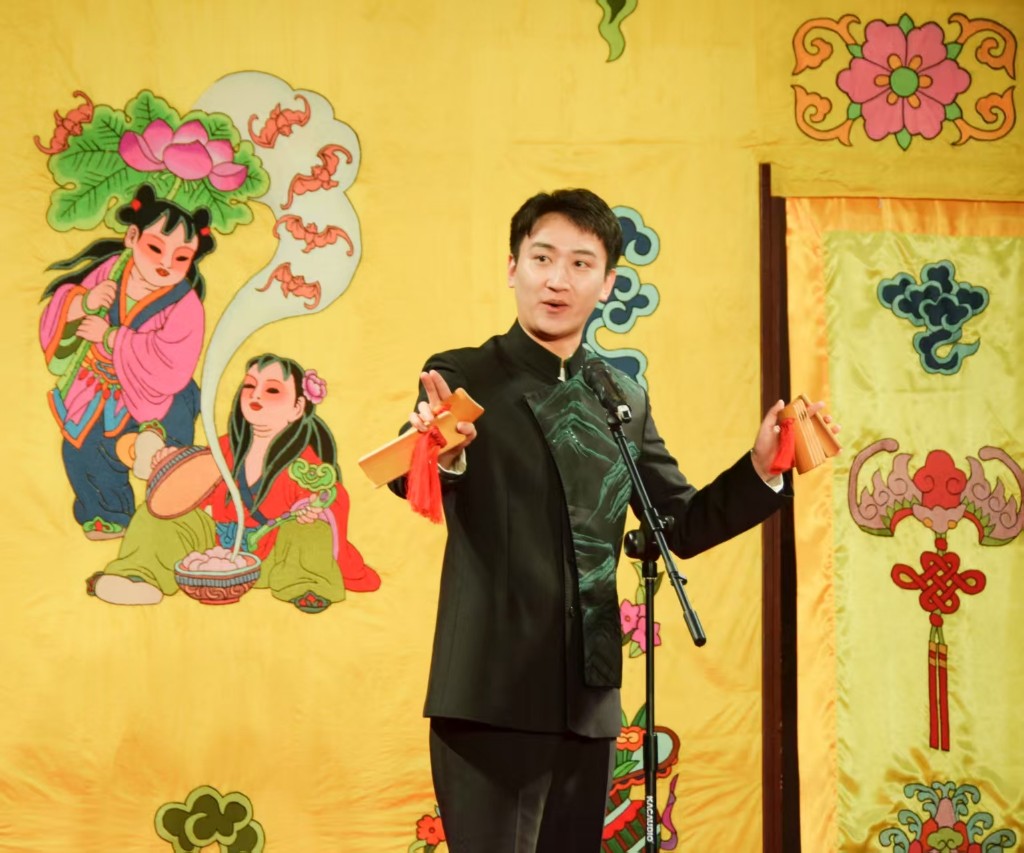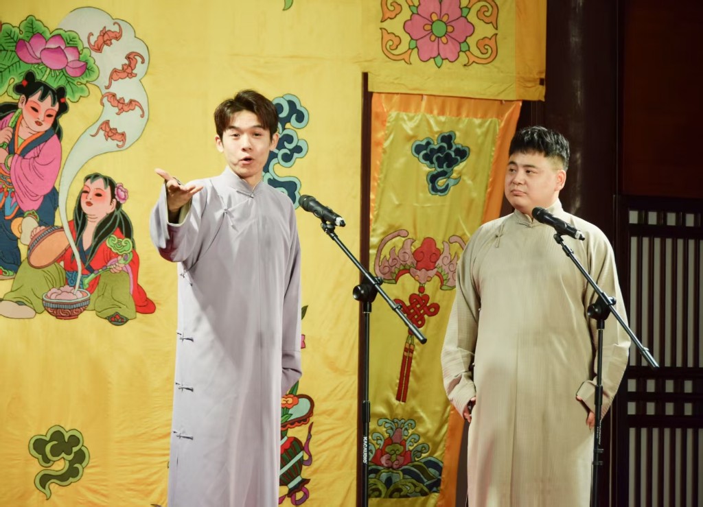 演出在相聲《歡聲笑語(yǔ)》《語(yǔ)言的藝術(shù)》中拉開(kāi)序幕,表演者鴻義和木木以幽默的語(yǔ)言瞬間點(diǎn)燃現(xiàn)場(chǎng)氛圍,展現(xiàn)了相聲藝術(shù)“歡聲笑語(yǔ)傳萬(wàn)家”的獨(dú)特魅力。隨后,揚(yáng)州評(píng)話《陳毅過(guò)江》登場(chǎng),表演者陳祝武以地道的揚(yáng)州方言、精湛的表演技藝,生動(dòng)再現(xiàn)了陳毅過(guò)江的經(jīng)典故事,讓觀眾沉浸式感受揚(yáng)州評(píng)話的韻味;吳佳澎、季逢春帶來(lái)的相聲《我把山歌捧出來(lái)》,將山歌元素與相聲藝術(shù)巧妙融合,呈現(xiàn)別樣藝術(shù)風(fēng)格;傳統(tǒng)評(píng)彈開(kāi)篇《賞中秋》由曹軼、倪晨演繹,婉轉(zhuǎn)的唱腔、典雅的韻味,帶領(lǐng)現(xiàn)場(chǎng)觀眾領(lǐng)略江南評(píng)彈的細(xì)膩與唯美?;顒?dòng)尾聲,快板《紅柳樓》表演者孫嘯以明快的節(jié)奏、清晰的口齒,將作品內(nèi)容精彩呈現(xiàn),更是贏得現(xiàn)場(chǎng)觀眾的陣陣掌聲。