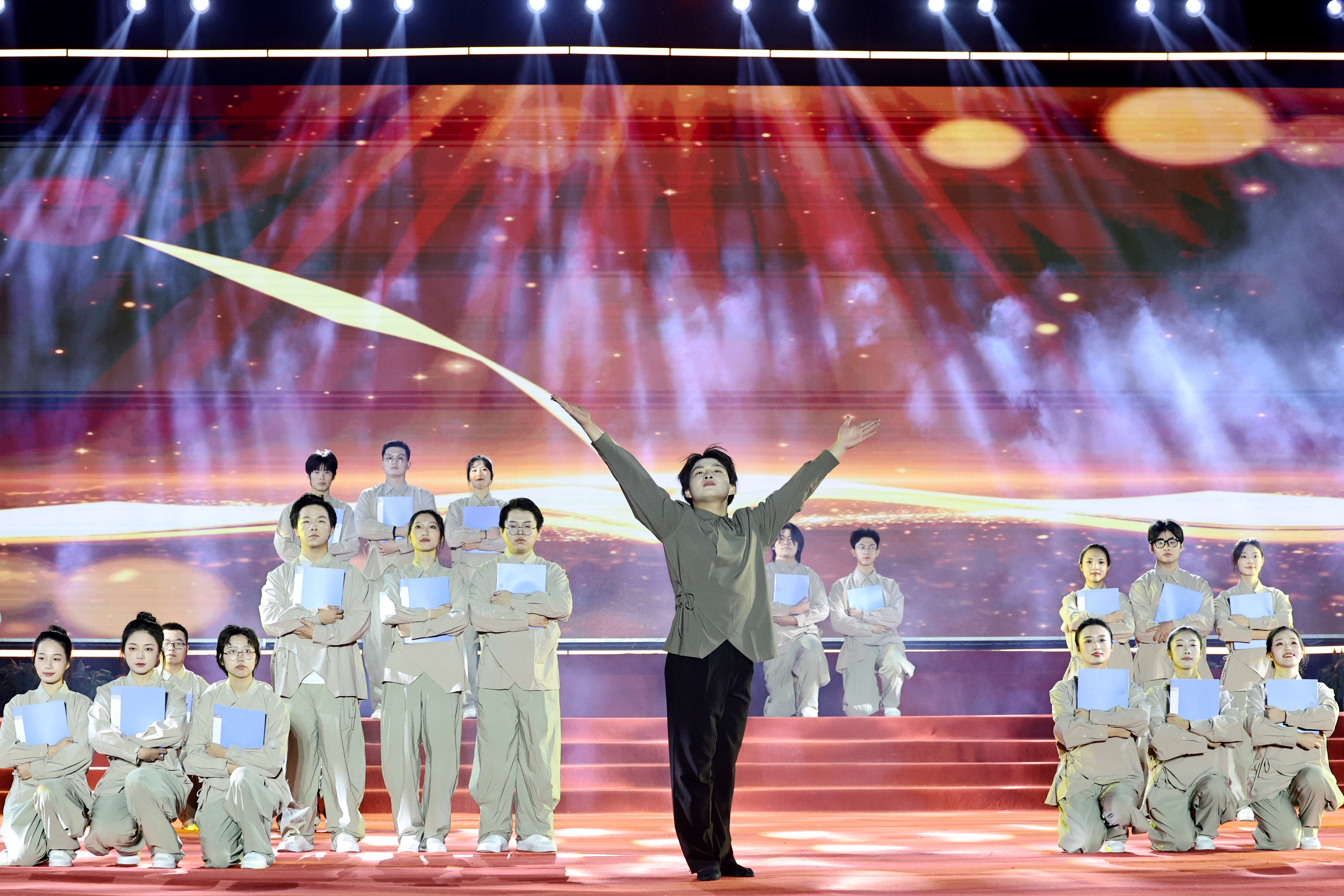 晚會開篇通過情景表演《百年情思1》,以沉浸式演繹再現(xiàn)張謇先生“父教育母實業(yè)”的理念,巧妙聯(lián)結新時代教育使命。隨后,舞蹈《開拓》、歌舞《我們都是追夢人》、朗誦《江海筑夢繪藍圖》、海安花鼓《潮聲鼓韻》等節(jié)目依次登臺。其中,來自俄羅斯交換生帶來的歌舞《莫斯科的風,青春的歌》為晚會增添了國際元素,南通理工學院管弦樂團首次亮相,以《紫瑯序曲》《茉莉花》兩首曲目用悠揚旋律為母校獻上真摯祝福。科技街舞環(huán)節(jié)創(chuàng)新融合“街舞+機器人表演”,青春舞步與科技元素的碰撞帶來極具未來感的視覺沖擊,成為全場亮點。最后,晚會在全場齊唱《我愛你中國》與《校歌》的嘹亮歌聲中圓滿落幕。整場活動通過藝術化的表現(xiàn)形式,不僅回顧了學校25年來的發(fā)展歷程,更展現(xiàn)了南通理工學院全體師生在新時代背景下奮發(fā)向前的精神面貌。