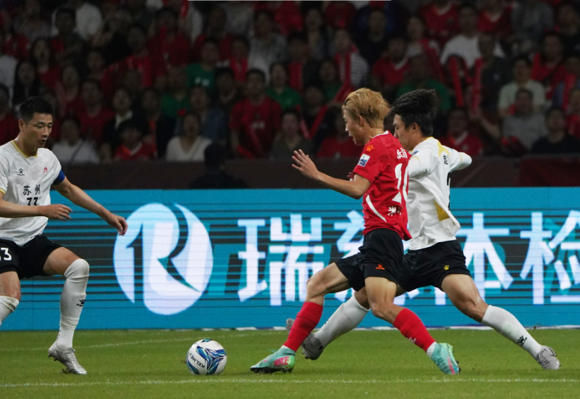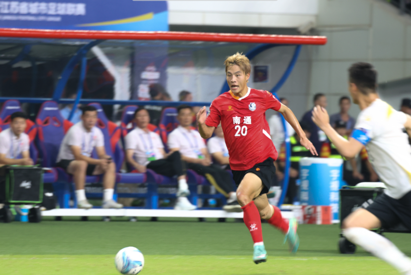 今年“蘇超”聯(lián)賽,南通隊(duì)對(duì)陣徐州隊(duì)的比賽中,張浩楠在禁區(qū)外接到隊(duì)友傳球,稍作調(diào)整后起腳射門,足球劃出弧線飛入球門。進(jìn)球后,全場(chǎng)歡呼,隊(duì)友們沖向他緊緊相擁。
