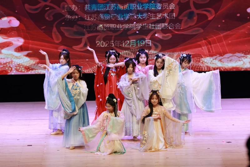 奮楫揚(yáng)帆啟新程,同心筑夢(mèng)向未來(lái)。12月19日晚,由江蘇商貿(mào)職業(yè)學(xué)院團(tuán)委主辦、大學(xué)生藝術(shù)團(tuán)及學(xué)生社團(tuán)聯(lián)合會(huì)共同承辦的“駿馬新程 馭夢(mèng)而行”2026迎新匯演暨大學(xué)生藝術(shù)團(tuán)匯報(bào)演出在學(xué)校圖文信息大樓報(bào)告廳舉行。學(xué)校團(tuán)委、學(xué)工處及各二級(jí)學(xué)院師生600余人歡聚一堂,共同觀看了這場(chǎng)青春洋溢的文藝匯演。