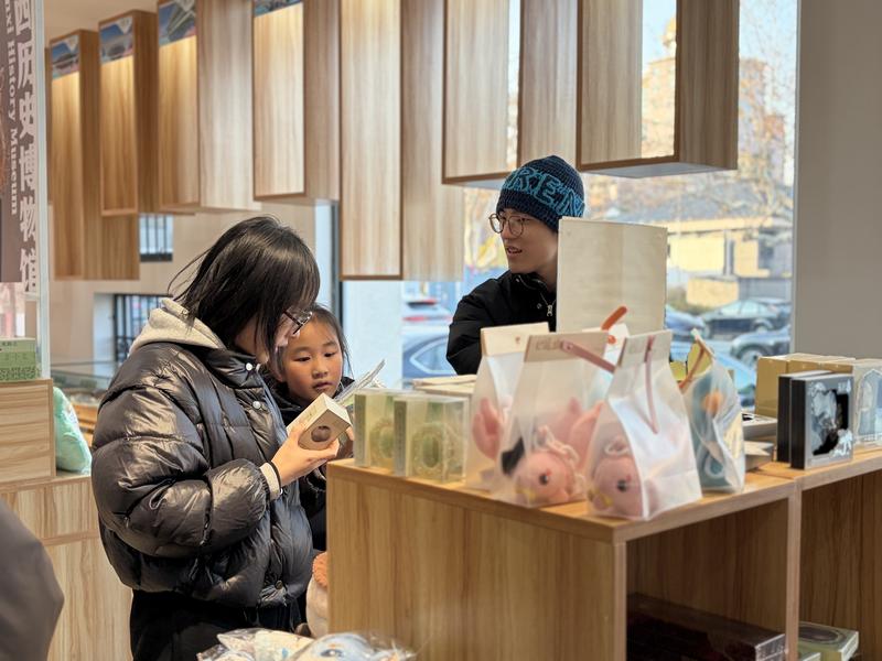 1月3日,元旦假期的最后一天,南通博物苑南門文創(chuàng)商店人氣持續(xù)火爆。河南博物院的“琺瑯鑲玉葫蘆”冰箱貼、蘇州博物館的“吳王夫差寶劍”毛絨款、殷墟博物館的甲骨文徽章盲盒……來自全國120余家知名博物館的寶藏文創(chuàng)產(chǎn)品在此集結(jié),讓市民游客得以一站式領(lǐng)略各大博物館的獨特魅力,親身感受傳統(tǒng)文化在創(chuàng)新創(chuàng)造中迸發(fā)的活力。