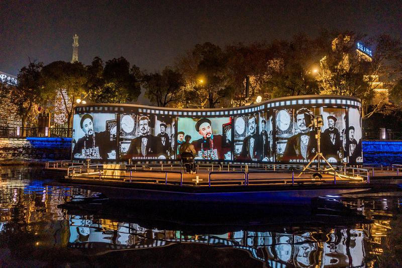 據(jù)悉,項目沿濠河游船動線,利用現(xiàn)有橋梁、碼頭、景觀,在濠西書苑及盆景園、中公園及南公園、博物苑及群英館、濠東綠地及城隍廟等四個片區(qū),打造了“千年濠河、水城歡歌、游園尋夢、時光河谷、織被天下、江海漁火、魚躍龍門、百年好合”八大篇章、二十處觀賞場景。同時,結(jié)合真人實景演出,創(chuàng)新引入廣播情景劇,通過回鄉(xiāng)應(yīng)聘的大學(xué)生“小崇”與“小川”的對白,生動呈現(xiàn)南通深厚的實業(yè)傳統(tǒng)、人文積淀與城市愿景,讓游客在夜色漫游中,穿梭于現(xiàn)實與歷史之間,感受“中國近代第一城”的文化厚度與時代活力。