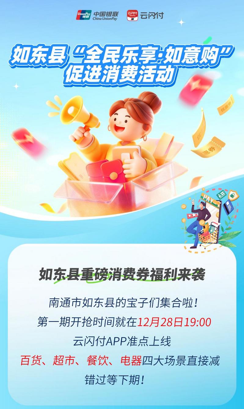 據(jù)了解,“全民樂(lè)享?如意購(gòu)”消費(fèi)促進(jìn)活動(dòng)將統(tǒng)籌縣鎮(zhèn)兩級(jí)資金,通過(guò)銀聯(lián)云閃付平臺(tái)精準(zhǔn)投放消費(fèi)券,縣級(jí)層面計(jì)劃投放300萬(wàn)元,城中街道投放30萬(wàn)元,掘港街道投放10萬(wàn)元,大豫鎮(zhèn)等也將投放專項(xiàng)消費(fèi)券,多輪福利疊加,讓廣大市民群眾消費(fèi)更劃算。