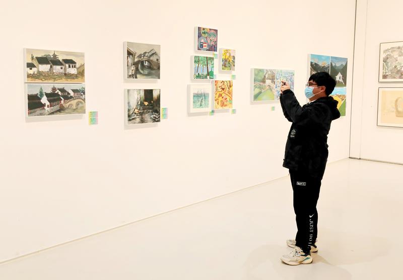 在展覽現(xiàn)場,作品從水墨氤氳的江南園林到波光粼粼的運河兩岸,從非遺技藝的匠心傳承到街頭巷尾的煙火日常,既展現(xiàn)了傳統(tǒng)美學底蘊,又彰顯了當代藝術(shù)的多元探索。國畫的筆墨意趣、油畫的斑斕色彩、版畫的刀木精神、綜合材料的創(chuàng)新表達,每一件作品都是青少年對家鄉(xiāng)的深情凝視,也是對“水韻江蘇”文旅品牌內(nèi)涵的生動表達,在生動詮釋“以美育人”理念的同時,勾勒出新時代江蘇青少年美育教育的豐碩成果。