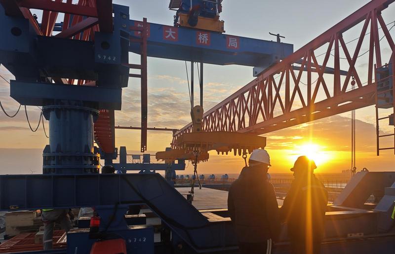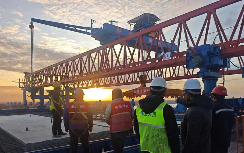 發(fā)布時(shí)間:2026-01-29 編輯:王婷 來源:視覺南通網(wǎng)15日,隨著最后一塊預(yù)制橋面板鋪架到位,由中鐵大橋局承建的滬渝蓉高鐵V標(biāo)崇啟公鐵長江大橋主通航孔橋南側(cè)邊跨預(yù)制橋面板鋪架完成。主通南側(cè)邊跨橋面板總計(jì)218塊,單塊橋面板最大重量為34.3噸,利用40噸架板機(jī)架設(shè)。